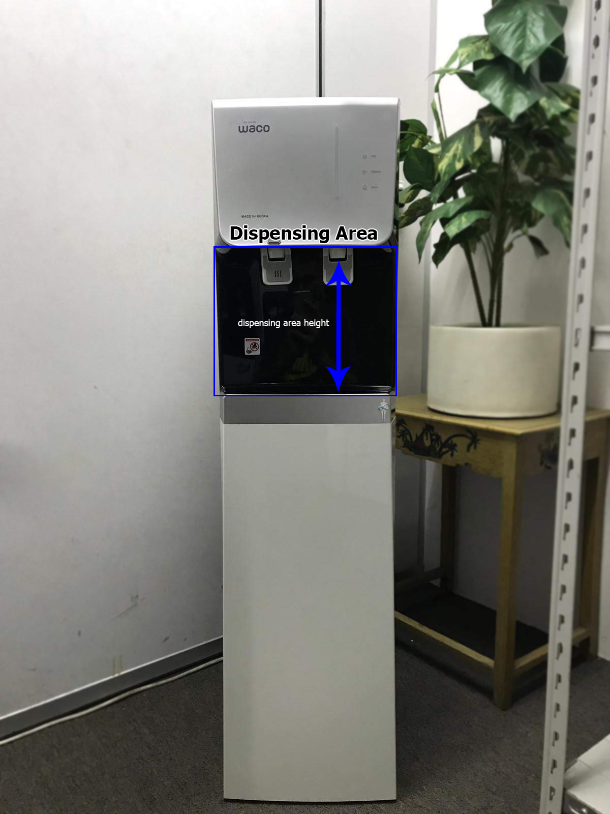 Dispensing area HEIGHT can be a consideration factor for some customers. While smaller dispensing height is good for hands free mugs and cups, some customers prefer taller dispensing area for ease of filling up taller water bottles without tilting.