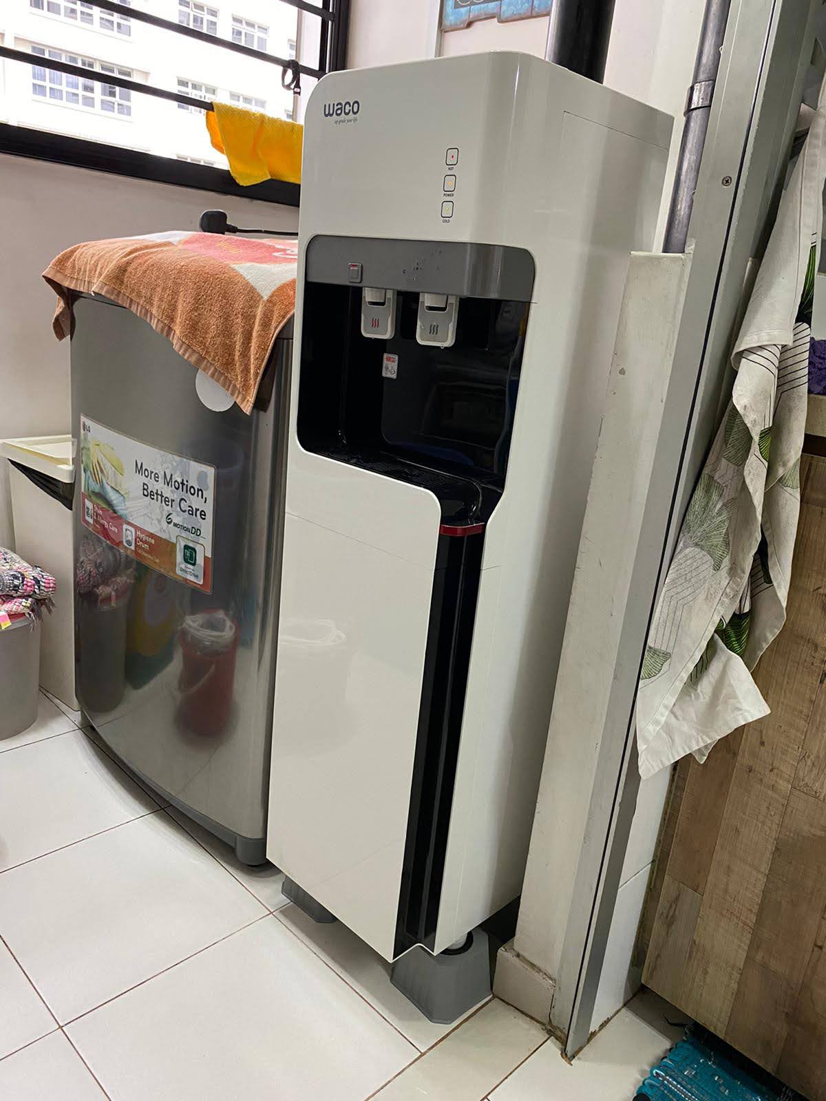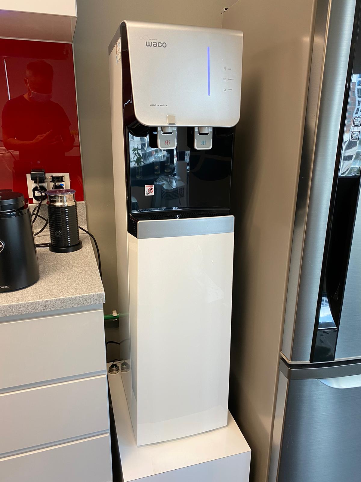 Notice the fridge stand is used at the foot of this dispenser: